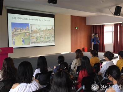5月28日,他在乐学楼6楼多功能厅为我院师生举行了题为《十六世纪欧洲佛兰德斯地区的喜剧院及绘画》的学术讲座。教授分享了欧洲中世纪文艺复兴时期喜剧、闹剧、艺术的发展历史。通过科学艺术的改革,为学生揭开了14世纪欧洲文艺复兴神秘的面纱,进一步了解欧洲文化。6月4日,他在睿智楼610教室为我院师生举行了题为《语系及词源学》的学术讲座。他分享了语言的概念、语言的类型、语言及其家族以及各大洲的语种分布情况。用风趣幽默的方式生动有趣地讲解了口语,书面语,手势语言,肢体语言等11种语言的分类。